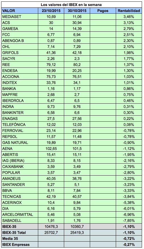 Rentabilidad de los valores del IBEX-35 esta semana