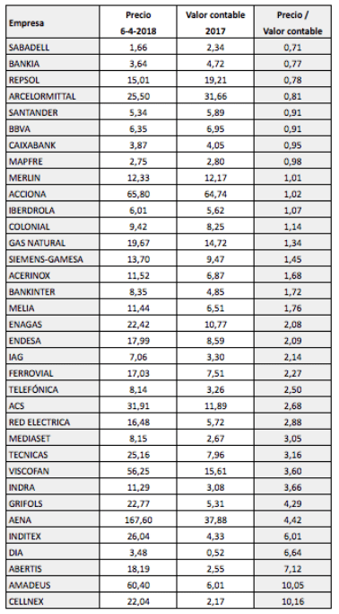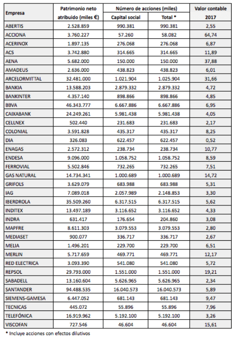 Un comentario sobre “Valor contable de las compañías del IBEX 35 en 2017”