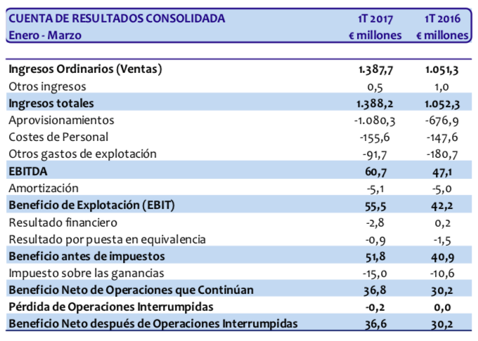Así, se deducía que el beneficio había crecido de 30,2 millones del primer trimestre de 2016 a 36,6 millones en el primer trimestre de 2018, un notable incremento del 21,1%.
