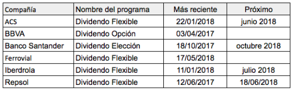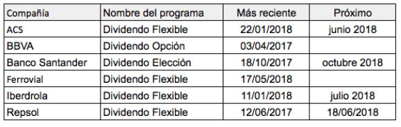 Compañías del IBEX 35 que recientemente han ofrecido un programa de estas características a sus accionistas son las siguientes: