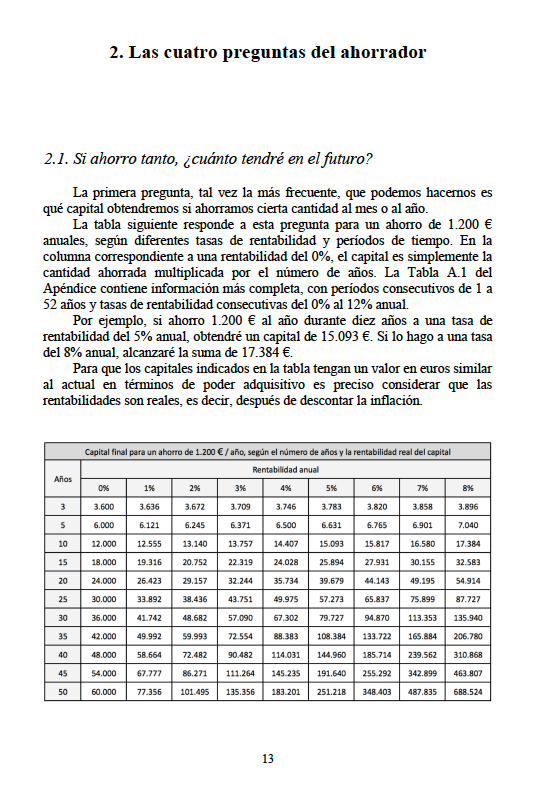 A partir de un estudio histórico sobre rentabilidad de diferentes activos, se calcula cuál es el plazo mínimo para ganar con seguridad si invertimos en determinados activos y combinaciones de activos. También se evalúa la relación rentabilidad-riesgo de diferentes opciones, así como el resultado de planes de ahorro diversificados según diferentes niveles de riesgo.