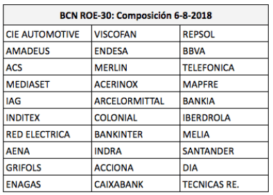 La composición del BCN ROE-30 se revisa cada trimestre. En la revisión de agosto los integrantes, ordenados de mayor a menor ponderación, eran los siguientes: