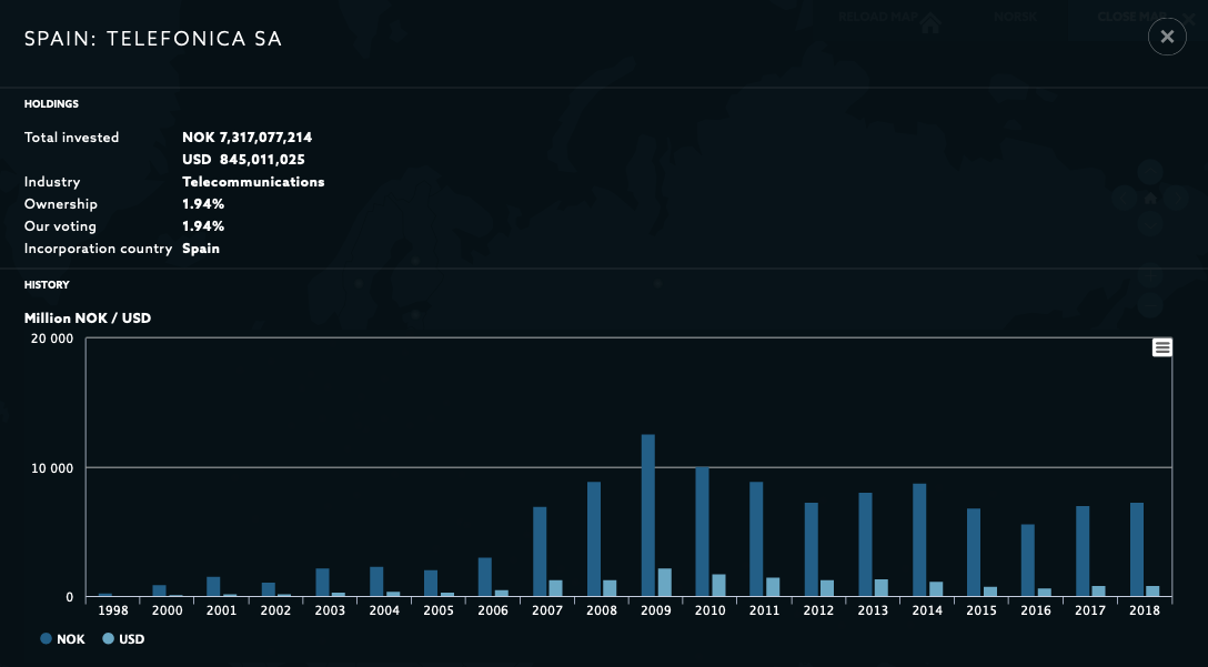 La posición del fondo de pensiones noruego en cada una de las empresas cotizadas españolas puede consultarse en este enlace (primero hay que seleccionar España en el mapa y luego ir a Investments).