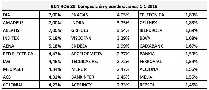 Veamos, por ejemplo, cuál era la composición del BCN ROE-30 el 1 de enero de 2018: