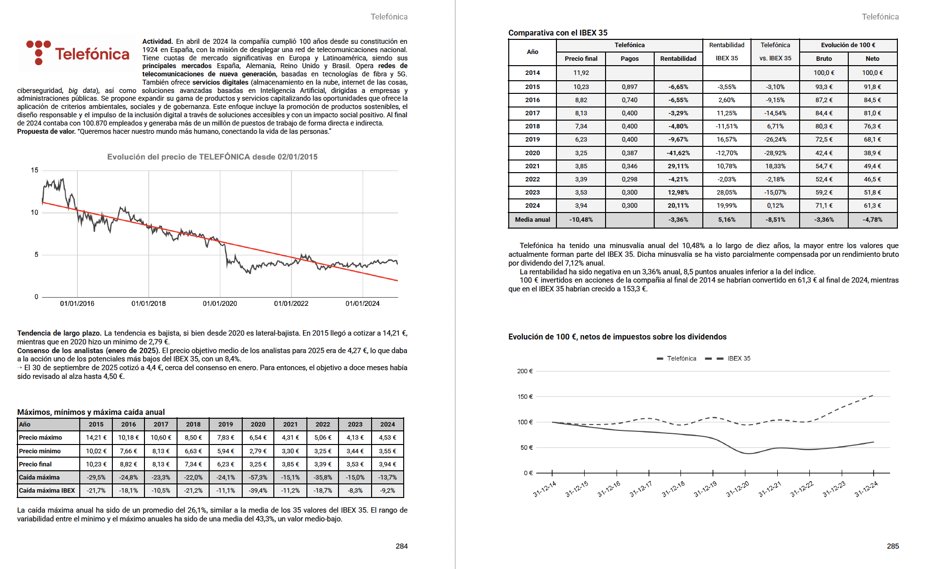 En las capturas siguientes, se reproducen las seis páginas dedicadas a Telefónica en La Guía del IBEX 35.