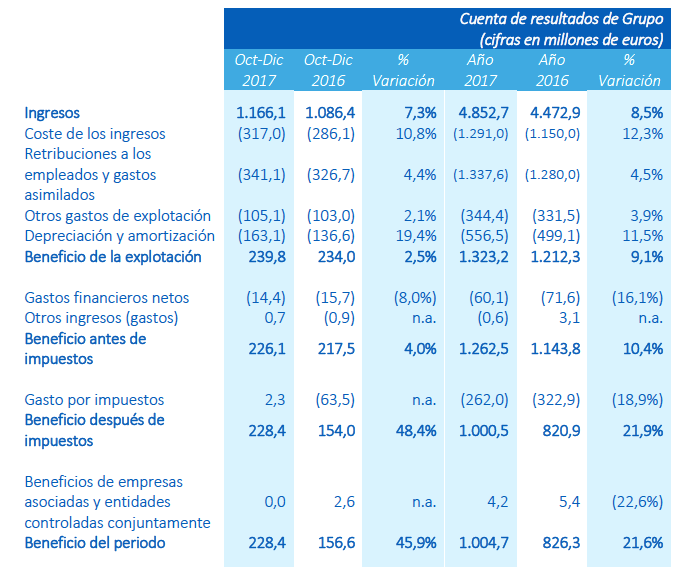 Y este el del cuarto trimestre, que indica un beneficio neto de 228,4 millones de euros.