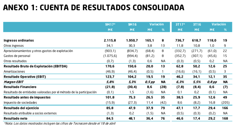 Esta es la cuenta de resultados de Indra del primer semestre de 2017.