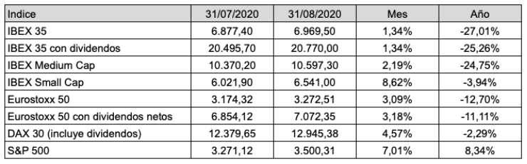 El IBEX 35 con dividendos perdió un 12,70% en 2020. El selectivo hizo un mínimo de 6.107,2 puntos el 17 de marzo, tres días después del inicio del confinamiento. El desplome fue del 39,43% respecto del máximo relativo de 10.083,6 puntos alcanzados el 19 de febrero. Sin embargo, la recuperación posterior llevó al índice a ganar un 32,2% hasta el cierre del año.