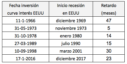En el artículo mencionado, otra firma de inversión, Cannacord Genuity, destaca el hecho de que la recesión puede tardar dos años o más en llegar después de la señal dada por la inversión de la curva, de forma que se trata de una mala señal, sí, pero con un retardo notable.