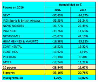 El cuadro siguiente es un ranking de rentabilidad de los valores del índice en 2017.