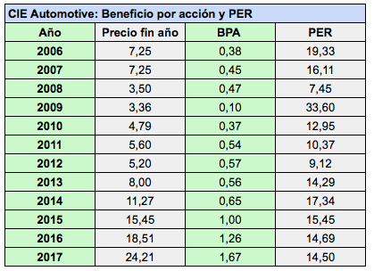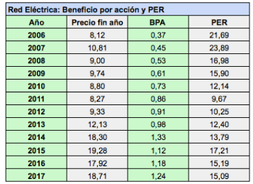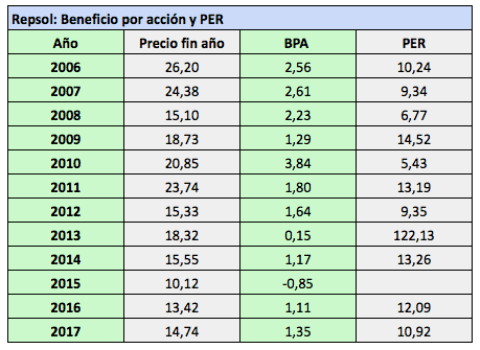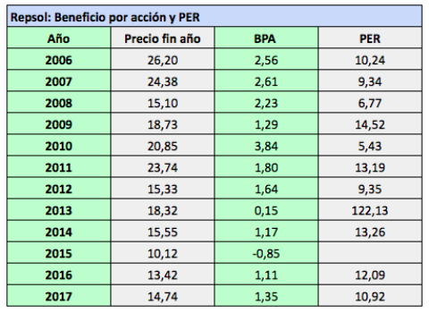 La petrolera incrementó de forma notable sus resultados en 2017 y la calidad del beneficio también mejoró sensiblemente. En 2016 el beneficio por acción (BPA) estándar fue de 1,11 € y el recurrente de 0,502 €. En 2017, la mayor parte del beneficio fue recurrente: BPA estándar de 1,349 € y BPA recurrente de 1,275 €. En los estados financieros de 2017, Repsol ha ajustado el beneficio por acción de 2016 de 1,16 € a 1,11 € por los intereses correspondientes a los bonos subordinados y el aumento del número de acciones para pagar el dividendo flexible.