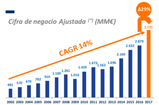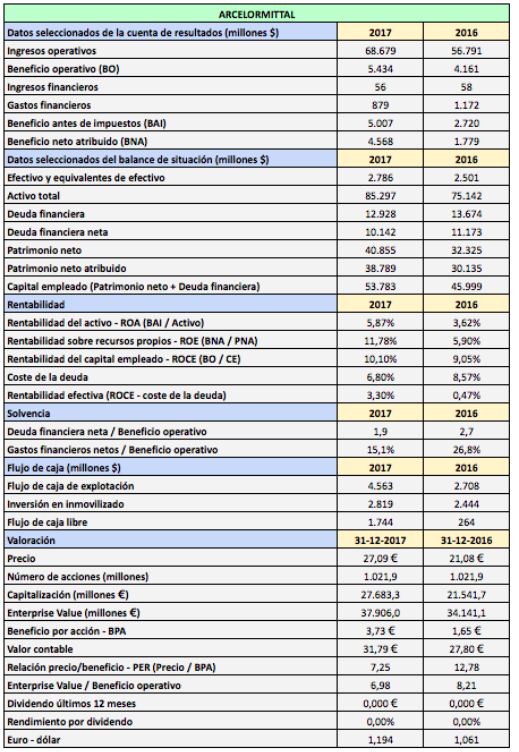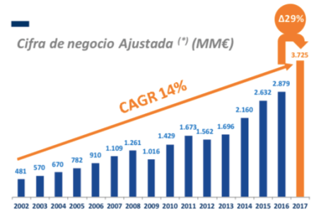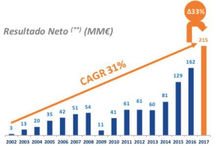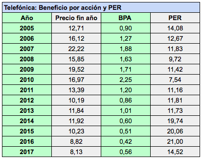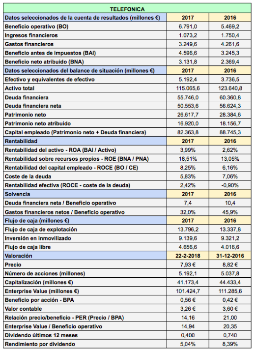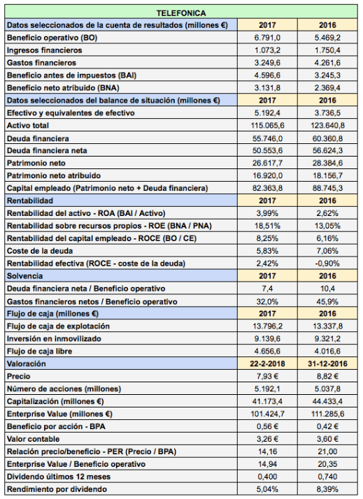 Por tanto, el patrimonio neto atribuido a los accionistas es de 28.740 millones de euros en 2017, lo que corresponde a un valor contable de 18,53 €, un 3,5% inferior al “oficial“.