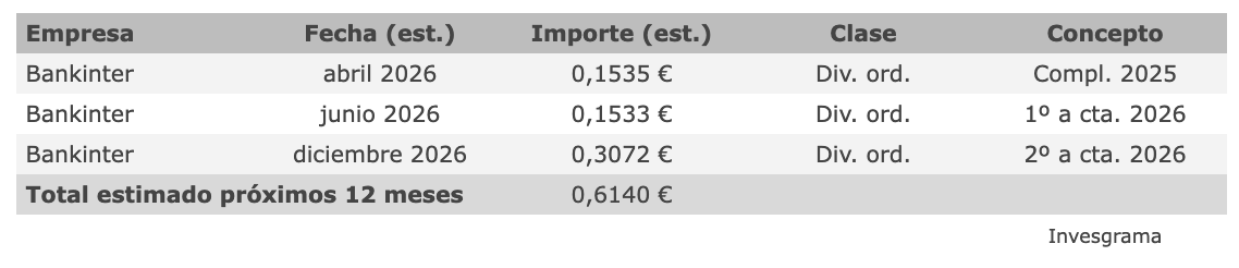 Dividendos de Bankinter en los próximos doce meses hasta enero de 2027