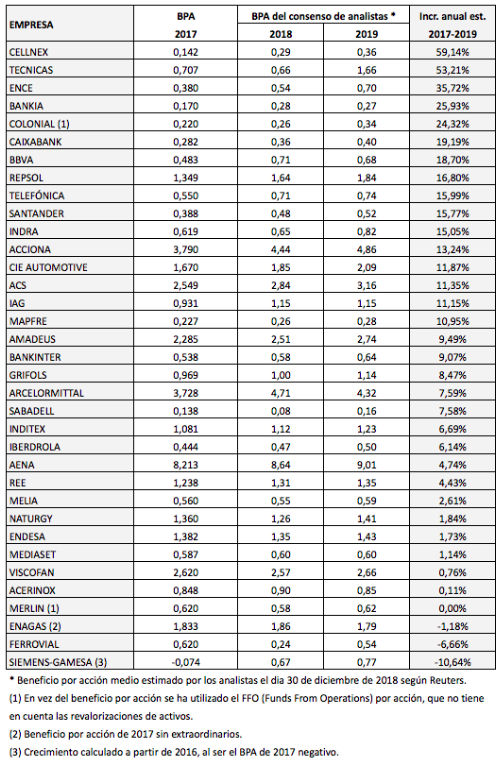 Según un exhaustivo análisis llevado a cabo por Ricardo Santos Rodríguez y publicado en la revista de Bolsas y Mercados Españoles bajo el título Consensos de beneficios y valoraciones en España en el período 2003-2013, “los analistas comienzan el año de manera muy optimista y van rebajando sus estimaciones de beneficios hacia el valor final real a medida que pasa el año y se van conociendo más datos”. Dado que los analistas tienden a recomendar valores para los que esperan mayores incrementos de beneficios, es probable que las recomendaciones que hacen a principios de año estén influidas más por expectativas que por datos reales, mientras que es plausible que a mediados de año sus recomendaciones sean más fiables porque estas se basan en mayor medida en información real y no tanto en expectativas, o en todo caso en expectativas más realistas.