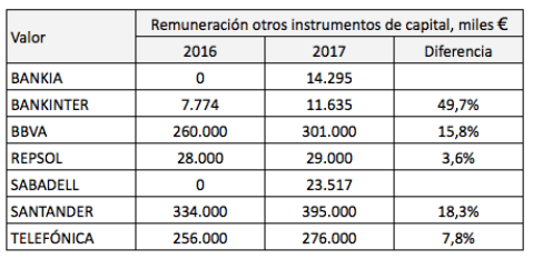 La tabla siguiente indica el beneficio neto atribuido informado en 2017 por las siete entidades analizadas y el real.