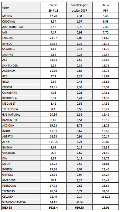 En el IBEX, el número de empresas con una elevada proporción de atípicos en el período de junio de 2014 a junio de 2015 es mayor: Acciona, Acerinox, ACS, Amadeus, Endesa, Ferrovial, Gamesa, IAG, Iberdrola, OHL y Telefónica. Por este motivo, el PER recurrente del IBEX es tan alto, de más de 30.