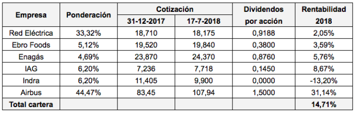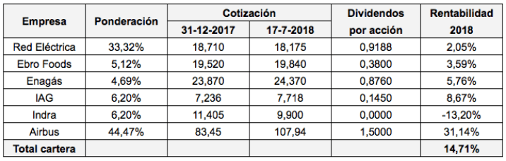 La rentabilidad de la cartera de empresas cotizadas de la SEPI era del 14,71% en 2018 hasta el día 17 de julio, con dividendos incluídos, gracias sobre todo a la significativa revalorización de Airbus. Si los seis valores tuvieran la misma ponderación, la rentabilidad sería del 6,34%. Este resultado supera ampliamente al IBEX 35 con dividendos, que el 17 de julio de 2018 perdía un 0,7% en el año.