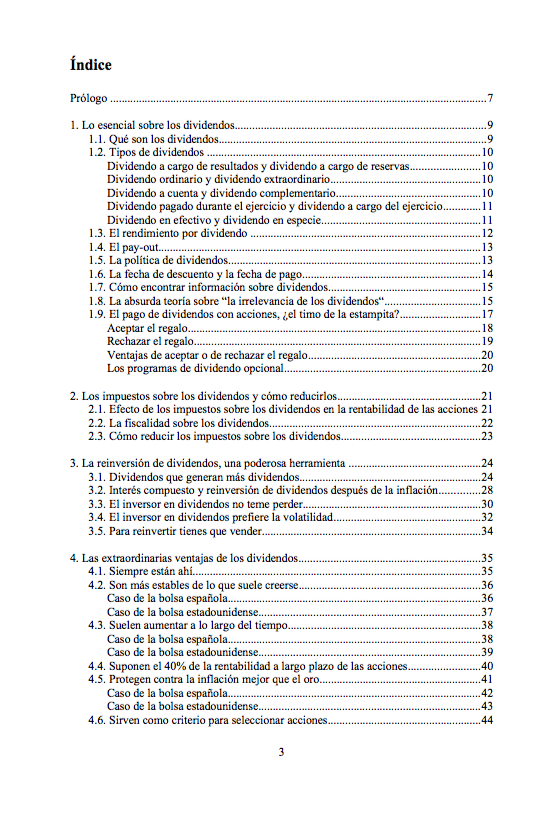 La monografía empieza explicando lo esencial pero es también un estudio sobre las ventajas de los dividendos para los inversores a largo plazo y contiene análisis sobre estrategias de selección basadas en el rendimiento por dividendo.