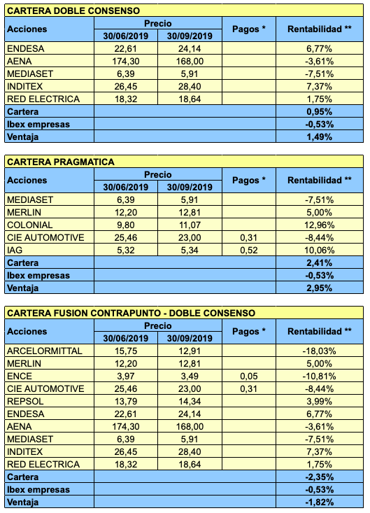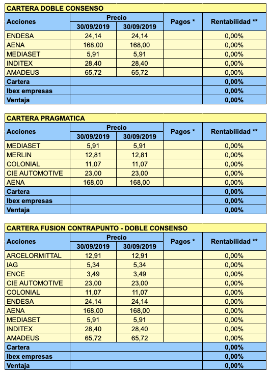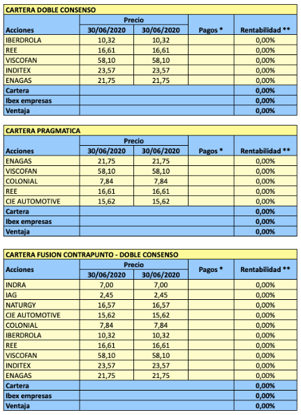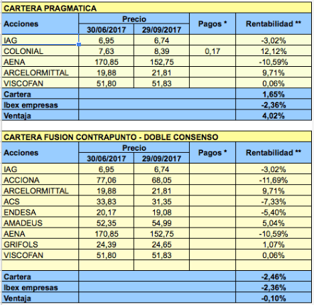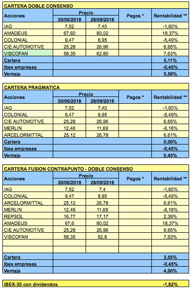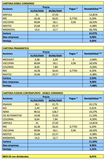 La cartera está formada por nueve valores porque IAG se repite en la Contrapunto y en la Doble Consenso.