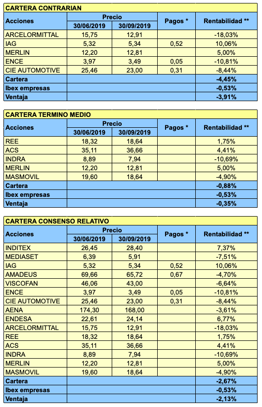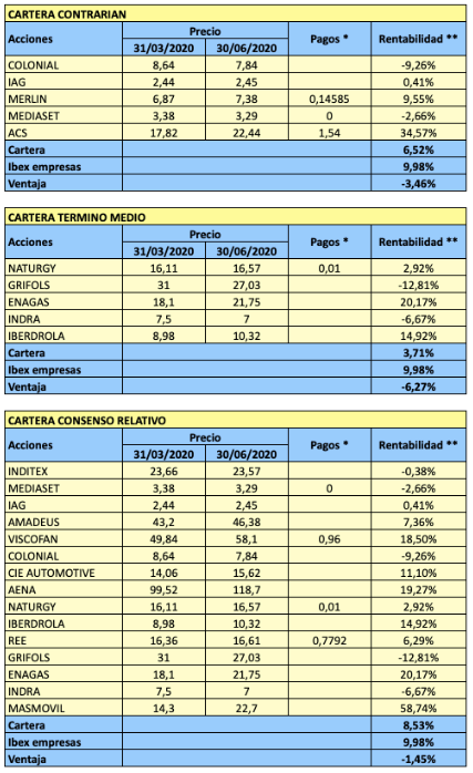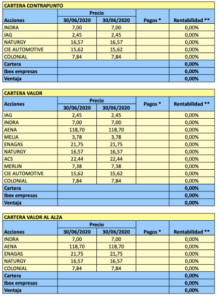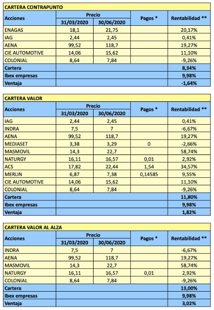 Podéis seguir las nueve selecciones a lo largo de la sesión bursátil en la página Las 9 carteras actualizadas y consultar el resultado por trimestres y el acumulado en Rentabilidades históricas.