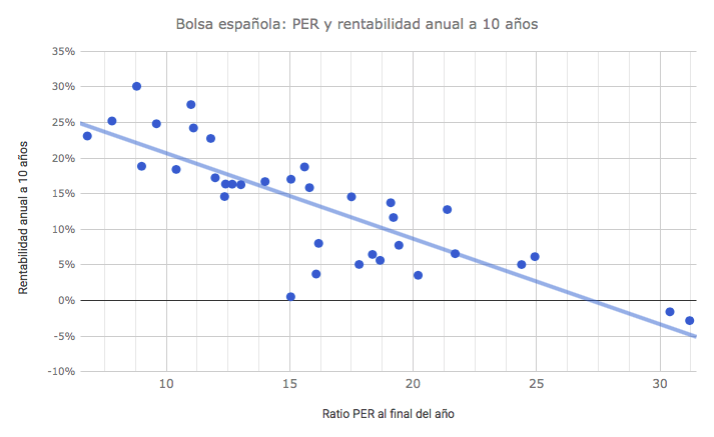 Para saber si la bolsa está cara o barata se suele recurrir al ratio PER (relación entre el precio de una acción y su beneficio por acción) de las acciones que componen un índice representativo, como el IBEX 35.
