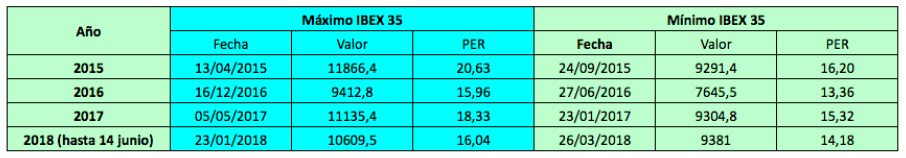 Los beneficios por acción indicados no consideran la autocartera. En tanto que las empresas alemanas mantienen un porcentaje de acciones propias más elevado que las españolas, si tuviéramos en cuenta la autocartera la comparativa de los ratios PER sería más favorable a los valores del DAX de la que resulta con los datos indicados.