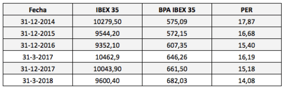 El día 29 de abril de 2018, el DAX tenía un ratio PER de 13,81 y el IBEX, de 15,02. Así, en términos generales el índice alemán está un 8% más barato que el español y con una calidad del beneficio superior.