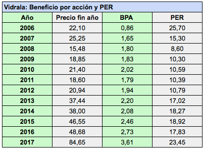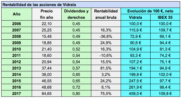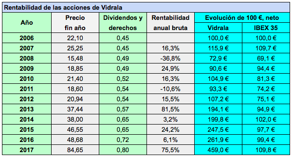 Si bien los resultados de Vidrala evolucionan favorablemente, hay que recordar que el precio actual no es comparable al de antes de la ampliación ya que los beneficios deberán repartirse entre un número mayor de títulos.