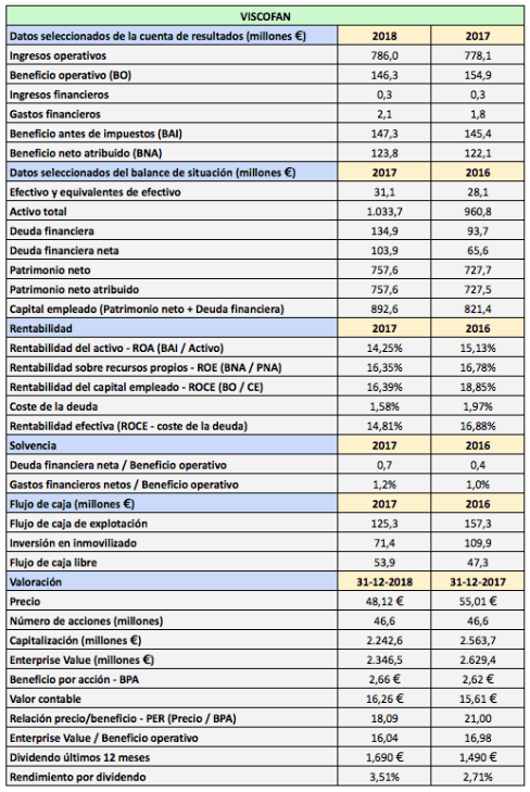 En su plan estratégico BE MORE, Viscofán indicó que concentraba sus esfuerzos en crear valor para sus accionistas de modo sostenible. Esta última palabra introduce un matiz significativo ya que la creación de valor no tiene mucho sentido cuando no es sostenida en el tiempo. La evolución de los resultados de la empresa, así como la de sus acciones, ha sido efectivamente sostenida, de manera que Viscofán no se queda solo en buenas palabras.